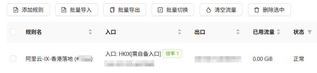 此时,从规则列表页复制刚才这条新建规则的IX“入口”IP和端口(为方便区分,这里简称端口A)备用。