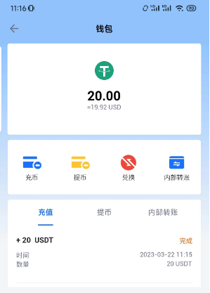 看到上图表示已将USDT成功兑换为美元。