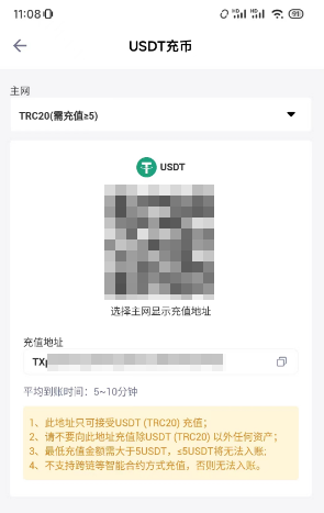 从你的Dupay App上找到你的钱包专属充值地址(理解为收款账号或者地址就是了),路径为“App首页 > 钱包 > USDT > 充币 > 选择主网为TRC20Polygon”(这里选择提币的交易所能支持的、且手续费较低的网络即可,例如币安交易所的话,可以选BNB):