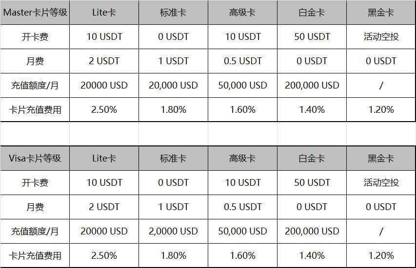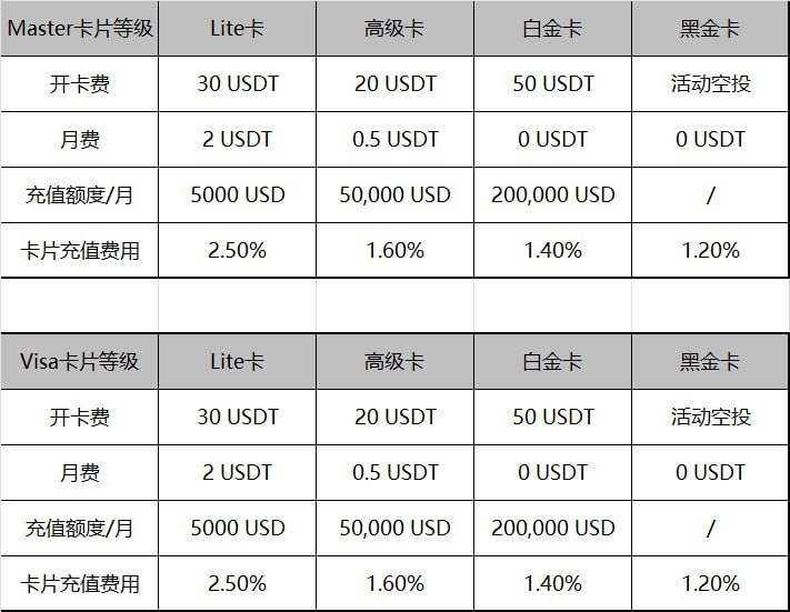 • 高级卡:开卡费20 USDT,最低充值30 USDT,加上其他中间损耗,建议这里至少提取60U