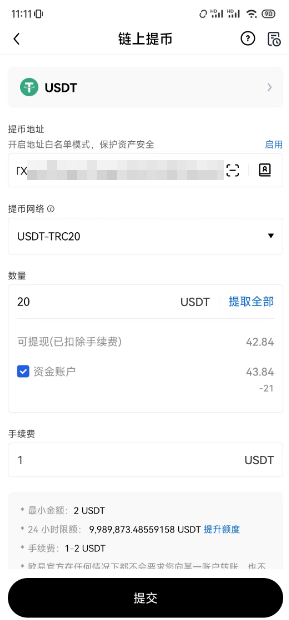 4、从交易所(如OKX)提币USDT到Dupay钱包