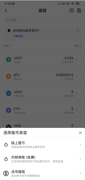 打开你的欧易OKX App(假设你已经在交易所买了USDT且资金处于非冻结状态),路径为:App首页 >  资产 > 总览 > 提币 > 选择 USDT > 选择“链上提币”。然后在提币界面粘贴刚才从Dupay获取的充值地址,填写想要转移的USDT数量。此处请根据你想要开哪张卡,预留合适的充值金额: