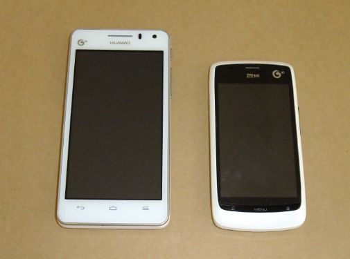 屏幕尺寸方面,4.5寸已经能够满足我的需求了。之前一直用中兴的U880,也才3.5寸。一开始刚接触智能机,不觉得手机屏幕小点有什么问题,后来用久了,才发觉屏幕大才是硬道理呀!道理很简单的,例如屏幕大一点,打字就不容易出错、地图导航视野会更开阔、许多app操作界面的按钮变得更容易点击,等等。但是,也不是说屏幕越大越好,至少我认为超过5寸就不太好了,不然的话你还不如买个能打电话的平板得了。下面是一张T8950与U880的合照,供大家围观一下: